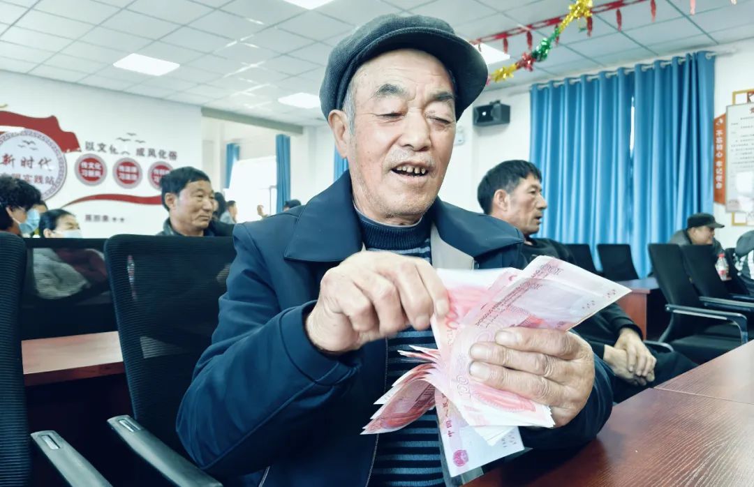 分红现场,村民们有序排队,签字、按手印、领取分红现金,拿到分红现金的村民个个脸上洋溢着收获的幸福,纷纷称赞党和国家的好政策,谈论着村集体经济发展带来的好处。