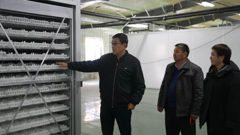3月19日,在托里县百福升农牧发展有限公司里,工人们正在搬运孵化设备,多台巷道孵化机、环流出雏器已经安装完毕,此项工作接近尾声。
