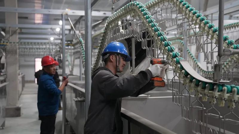 百福升农牧发展有限公司生产总经理袁绍文说:“屠宰区属于安装调试阶段。下一步水电都配齐的话7月份开始全面投产。其他配套的如商品鸭养殖,孵化场基本上也没什么问题了,5月份就可以入孵。饲料厂随时待命。全产业链形成,大约下半年开始初步要完成全产业链闭合,能生产的话,大约可以解决700-800人就业。”