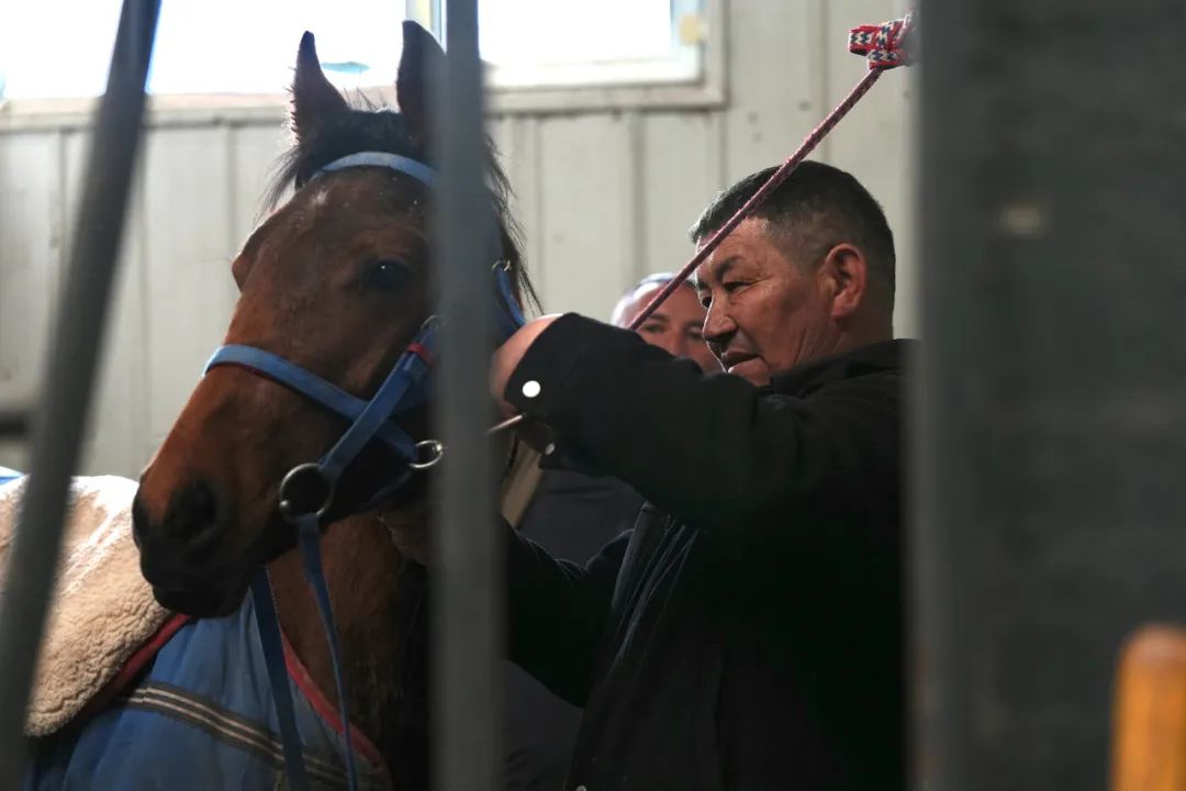 主人为参加比赛的马做准备。塔城地区融媒体中心记者苏珊琳摄