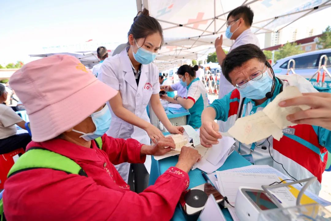 上午10时,额敏县也迷里广场人头攒动,数百名群众早早排队等候。韩红带领由全国三甲医院专家组成的医疗团队,为当地居民提供内科、儿科、眼科等多项免费诊疗服务。