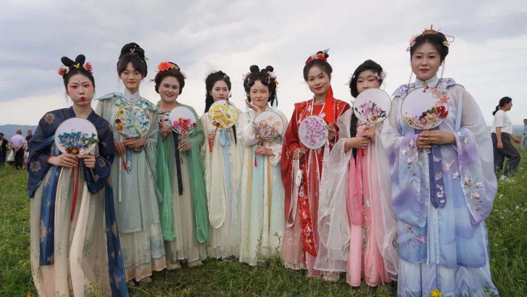 活动在极具哈萨克族风情的舞蹈《珈勒珈》中拉开序幕。舞者们踏着明快奔放的节奏,以热情洋溢的舞姿,淋漓尽致地展现出草原儿女的豪爽与洒脱,瞬间点燃现场气氛。紧接着,七位身着华美汉服的“花神”翩然登场,带来舞蹈《锦绣笙歌》。她们衣袂飘飘、舞步轻盈,在举手投足间尽显华夏衣冠千年风雅,让观众仿佛穿越时空,沉浸在传统文化的独特魅力中。