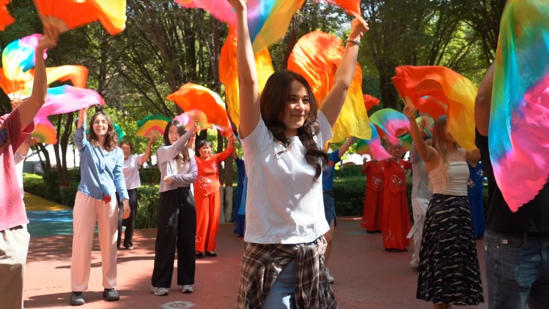 中国科学技术大学国际学院留学生巴图尔登说:“我看到好多不同民族的人在这里跳舞,温馨的场景让人感动。公园的设计也很巧妙,我一定要多拍些照片,分享给我的家人和朋友。”