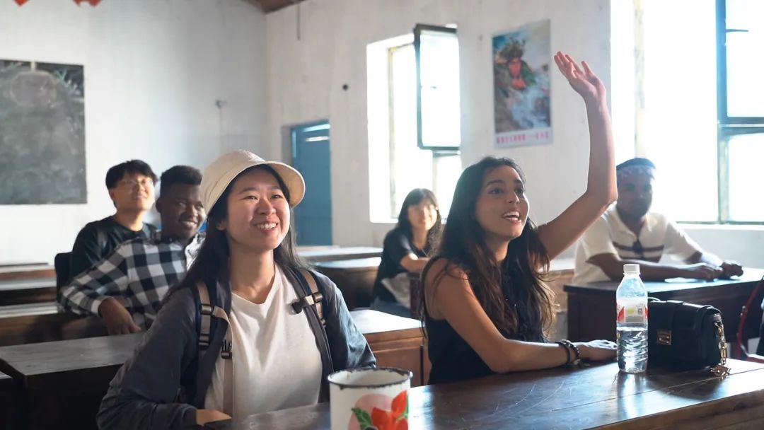 走进裕民县 7080 年代印象主题场馆,绿皮火车、老式物件等瞬间唤醒旧日时光。留学生穿梭于地窝子、年代房屋间,如同置身中国社会发展的“时光博物馆”,从70年代的土坯房到现代智能社区,从手写书信到5G通讯,真切感受中国发展的沧桑巨变。