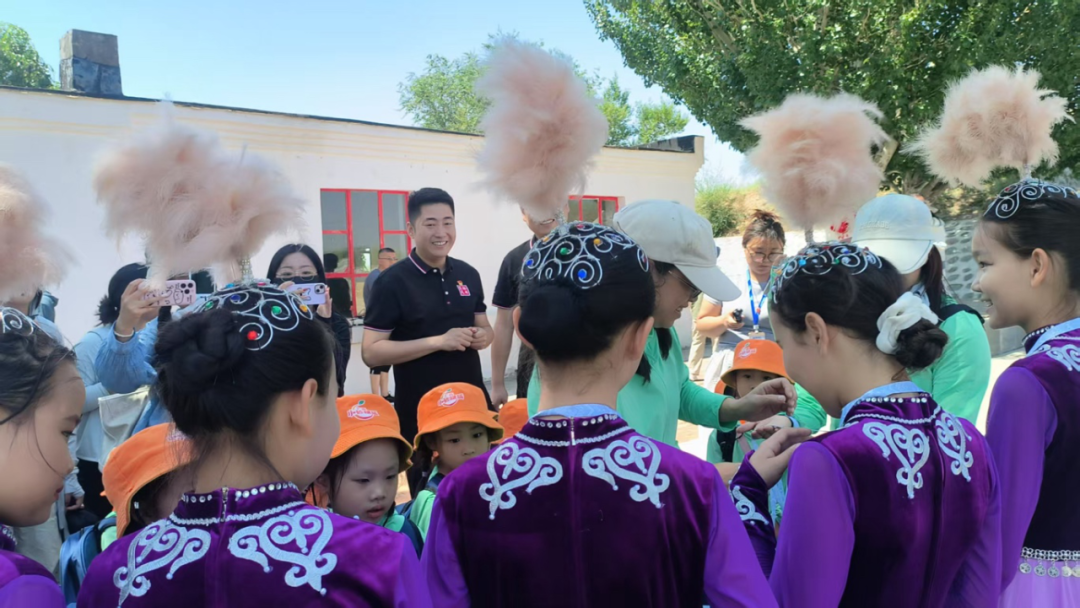 走进塔城地区裕民县,大家穿的都是同款文化衫,黑、白、蓝、灰底色,左胸绣着“富裕民间”。