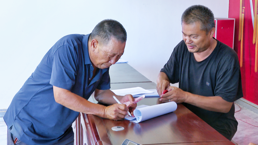 分红大会现场喜气洋洋,村干部介绍了过去一年合作社的经营情况,并对村集体经济的分配方案进行了解读。一捆捆现金被整齐地码在桌上,村民们有序领取了分红款。