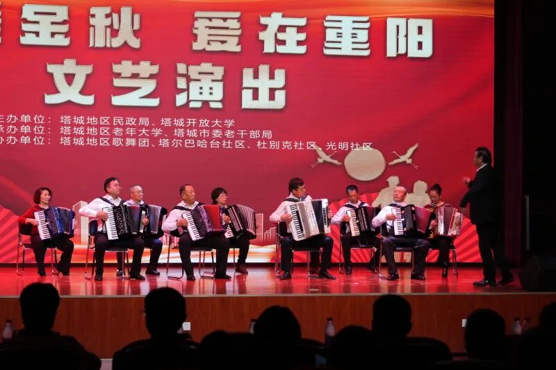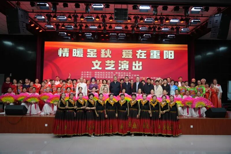 10月28日下午,塔城地区民政局、塔城开放大学、塔城地区老年大学联合举办“情暖金秋、爱在重阳”文艺汇演,以文艺表演为载体传递敬老爱老情怀 。