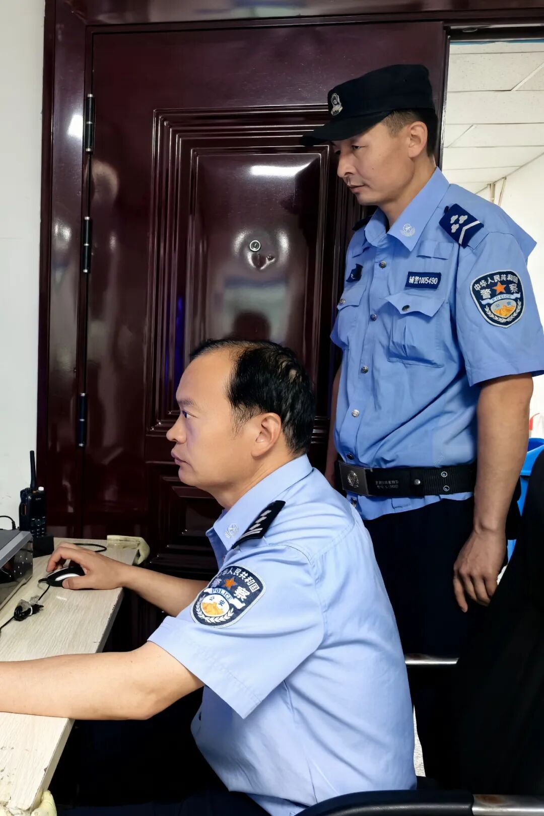 民警在查看案卷。