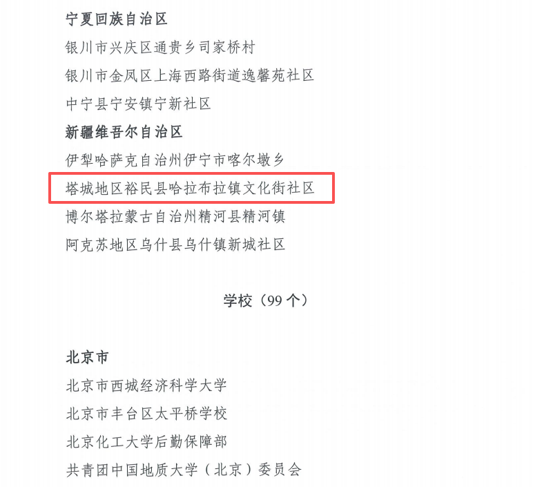 11月21日,记者从地区红十字会了解到,在11月19日中国红十字会办公室发布的全国红十字模范单位表彰名单中,塔城地区裕民县哈拉布拉镇文化街社区获得殊荣。