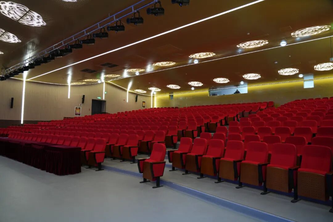 场馆内,一层可容纳550人的专业演艺厅舞台灯光璀璨,配套的录音室、更衣室等功能空间齐全;二层美术室、舞蹈排练室、器乐室等艺术功能区域布局合理,为不同艺术爱好者提供了专业化的活动场地。
