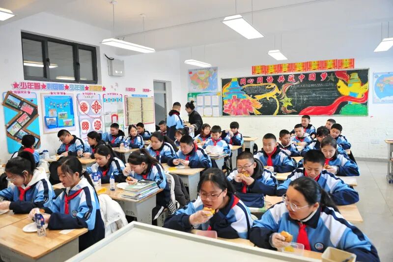 “我可不是陪餐时才来食堂,每天这个点我都在这儿。”有着25年教龄的席述华,因亲和力十足被学生们亲切唤作“老席”。她介绍,学校充分整合住宿生伙食补贴与营养餐补助政策,确保午餐实现一荤两素标配,牛奶、鸡蛋每日足量供应,排骨、大盘鸡等荤菜定期轮换,每周能为学生提供三十余种不同菜品,全方位保障学生营养均衡。