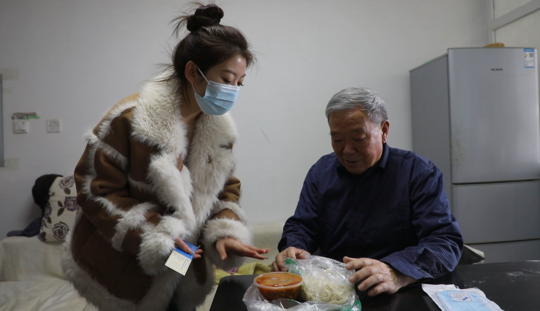 工作人员送饭上门。