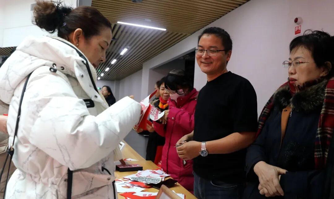 活动现场还设置了剪纸区与猜谜区,丰富了群众的参与体验。剪纸区内,民间艺人巧手翻飞,一张张骏马造型的窗花栩栩如生,将马年元素与传统剪纸艺术完美结合;猜谜区前,男女老少凝神思索、相互探讨,不时传出欢快的笑声,在趣味互动中感受中华优秀传统文化的魅力。