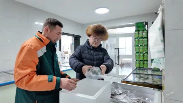 沙湾市某生鲜店负责人赵杰说:“以前发快递,我们得自己找泡沫箱,自己找冰块,现在邮政给我们提供了免费的泡沫箱,免费的冰块。而且速度更快,时效有保证,能够快速地把我们的生鲜飞往全国各地。”