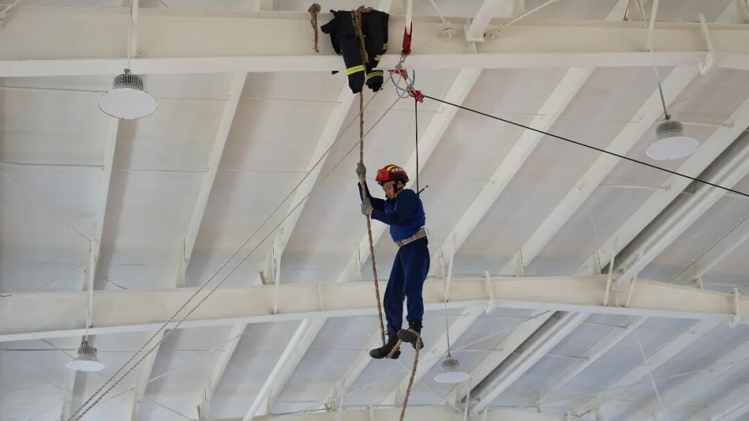 消防队员们正在日常训练。