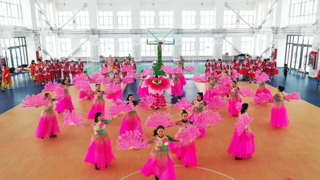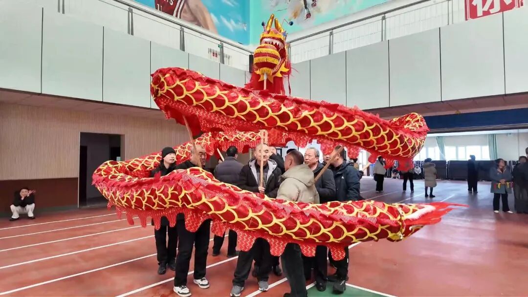 2月25日,金沟河镇200余人的秧歌社火队伍在沙湾市第三中学体育馆紧张排练。现场,队员们在专业老师的指导下全情投入,认真打磨每一个动作和队形。今年的节目编排以“传统+现代+地方元素”相结合,分为秧歌、舞龙舞狮、厨师舞、现代舞、红旗队五个版块。