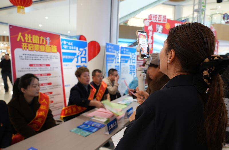 记者注意到,政策咨询区同样热闹非凡。来自人社、医保等部门的工作人员正在耐心解答求职者的各类问题,现场还有“直播带岗”活动,主播正对着镜头介绍参会企业和岗位信息,屏幕上不时弹出网友的互动留言。