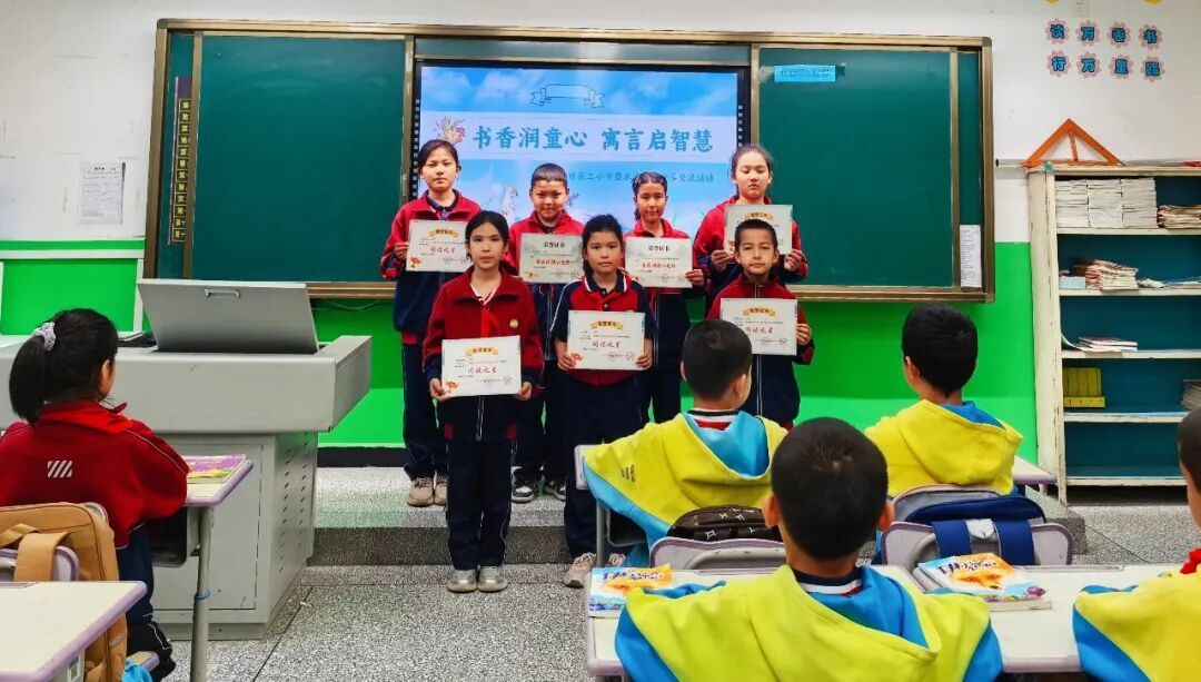 当日,乌苏市第三小学以班级为单位开展阅读分享交流活动,同学们围绕古代寓言故事踊跃分享,结合生活畅谈心得,解读寓言道理。同学们还分享了圈点批注、每日打卡、故事复述等读书方法。活动最后,各班为坚持阅读、表现突出的学生颁发“阅读之星”奖状并合影留念。