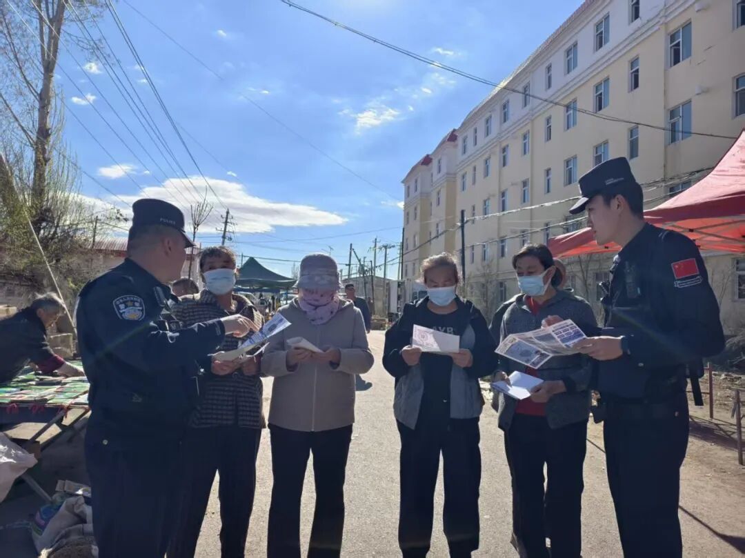 近日,塔城边境管理支队阿布都拉边境派出所组织警力走进热闹的集市商铺,开展反诈宣传活动,全力守护群众的财产安全。