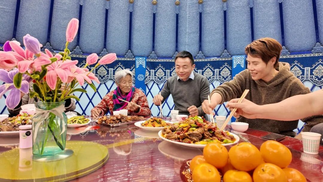 民宿负责人曹雅丽说:“在餐饮上,不光有我们沙湾的大盘鸡,以及新疆的大盘菜,我们引进了江浙沪等菜系。在住宿方面,我们不光有基础的标间和毡房,可以容纳200人就餐、150人住宿,我们还开设了一个江南小院。”