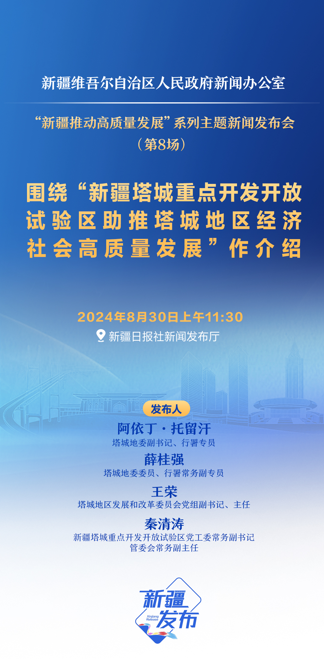 新疆新闻办将举行“新疆塔城重点开发开放试验区助推塔城地区经济社会高质量发展”新闻发布会