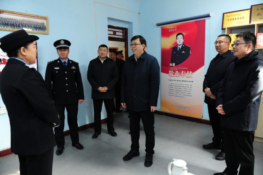 3月5日,地委书记支现伟来到塔城市杜别克派出所红桥警务站,深入了解警务站维稳机制运行、警力下沉、矛盾纠纷化解和服务群众的做法和成效。塔城地区融媒体中心记者汪春林摄