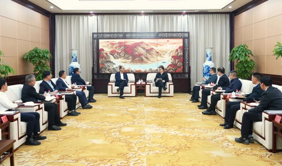 3月25日,地委书记支现伟会见北汽集团党委常委、副总经理,北汽福田党委书记、董事长常瑞一行。塔城地区融媒体中心记者苏珊琳摄