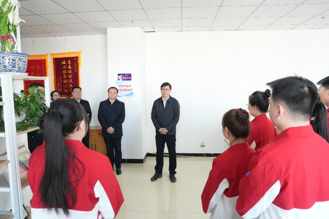 3月4日,地委书记支现伟在地区团委与志愿者亲切交流,了解大学生西部计划志愿者管理服务工作开展情况。塔城地区融媒体中心记者刘洪辰摄