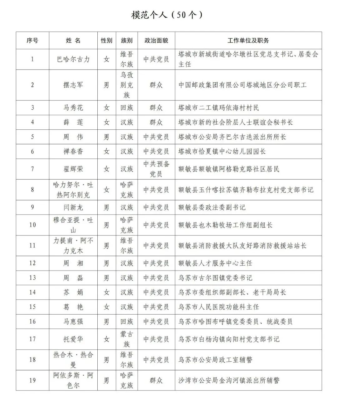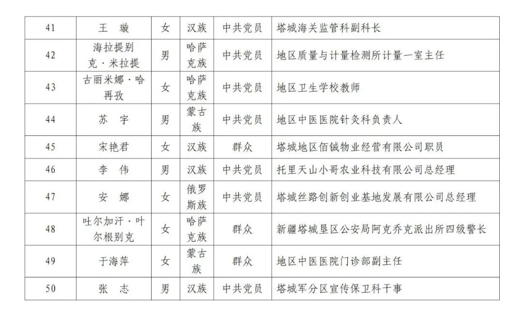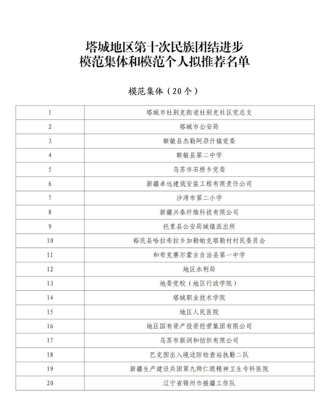 关于对拟推荐塔城地区第十次民族团结进步模范集体和模范个人名单的公示