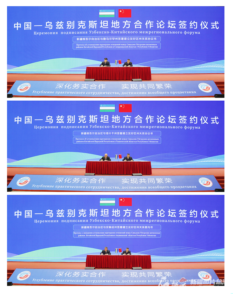 开幕式上,中国新疆维吾尔自治区与乌兹别克斯坦撒马尔罕州和塔什干州签署建立友好区州关系协议书,与安集延州签署建立友好区州关系意向书。天山网-新疆日报记者 谢龙摄