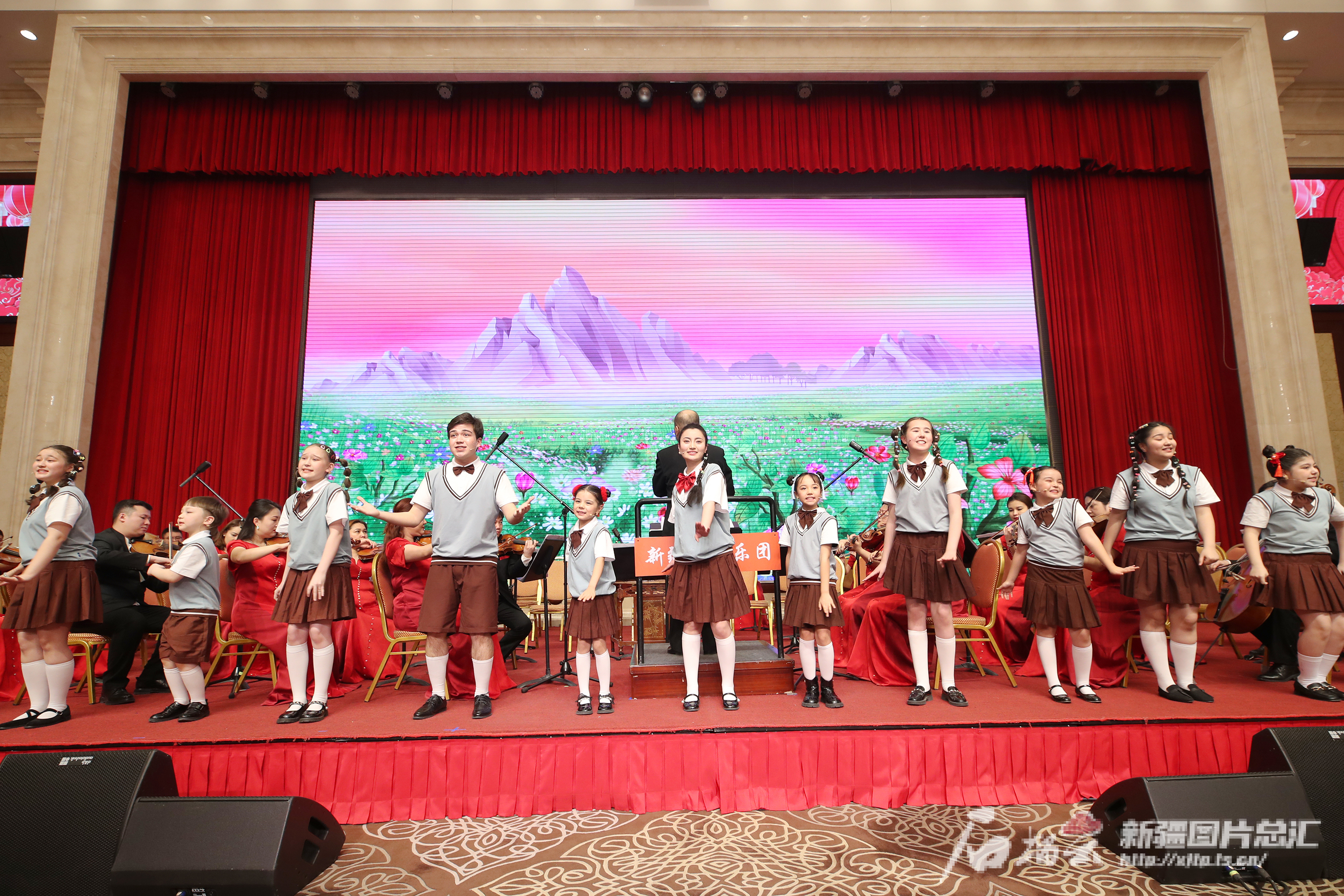 2月7日,在2024年春节团拜会上,雨点柠檬少儿合唱团演唱歌曲《天山上最美的花》。