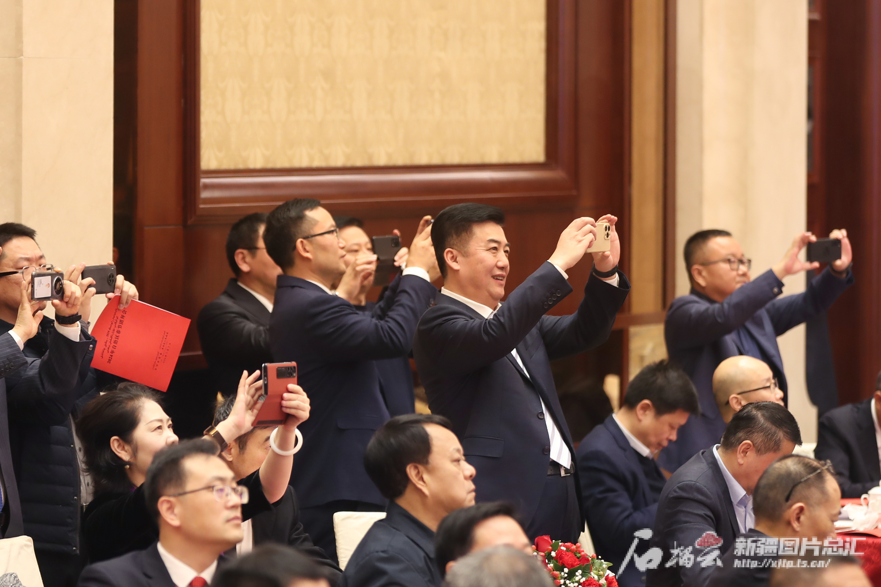 2月7日,在2024年春节团拜会上,与会代表用手机记录精彩演出。