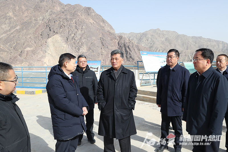 2月23日,自治区党委书记马兴瑞在开都河流域察汗乌苏水电站坝址实地察看国能集团抽水蓄能项目及清洁能源基地建设进展。天山网-新疆日报记者 崔志坚摄