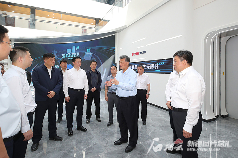 5月19日,自治区党委书记马兴瑞在新疆双杰新能源装备制造基地听取企业经营发展情况介绍,并和在木垒投资发展的部分风电企业负责人交流。天山网-新疆日报记者 崔志坚摄