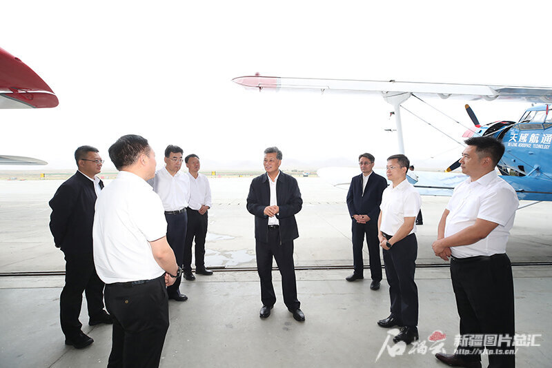 7月2日,自治区党委书记马兴瑞在石河子花园机场,详细了解天域航通大型无人运输机性能、应用领域、市场前景。天山网-新疆日报记者 崔志坚摄
