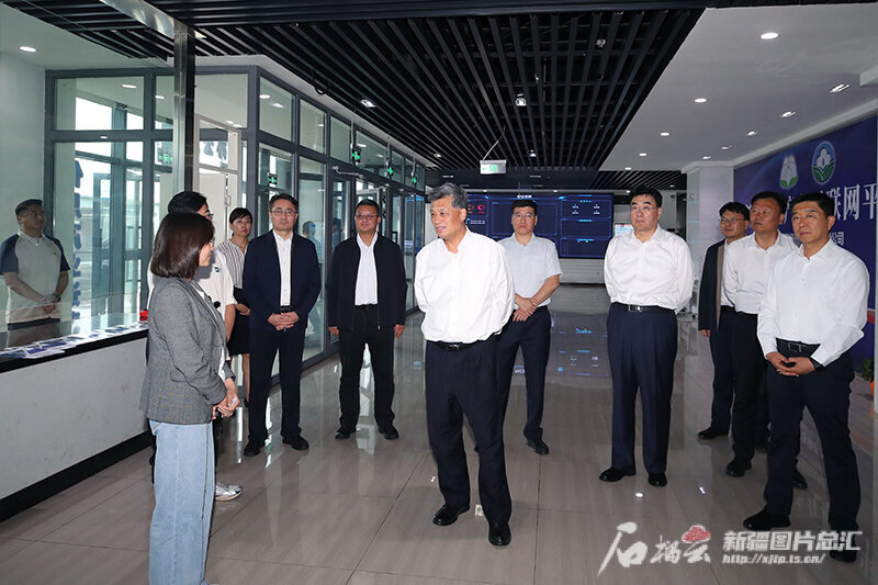 7月2日,自治区党委书记马兴瑞在新疆纺织产业互联网运营平台,听取项目建设和运营情况介绍。天山网-新疆日报记者 崔志坚摄