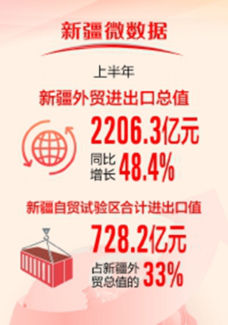 上半年新疆外贸进出口总值超2200亿 元同比增长48.4%