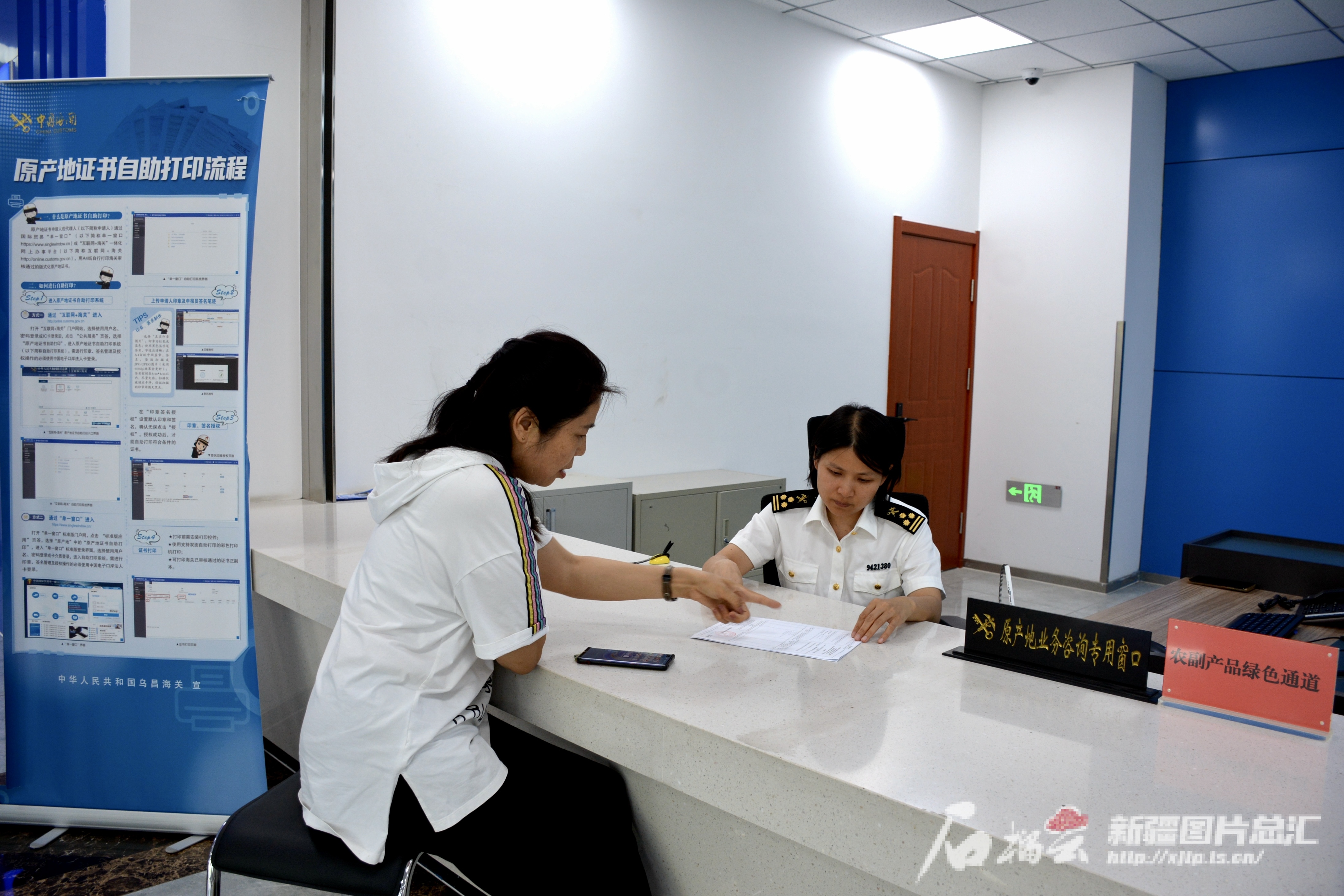 6月21日,乌昌海关关员向企业工作人员介绍原产地证书办理流程。张婷婷 摄