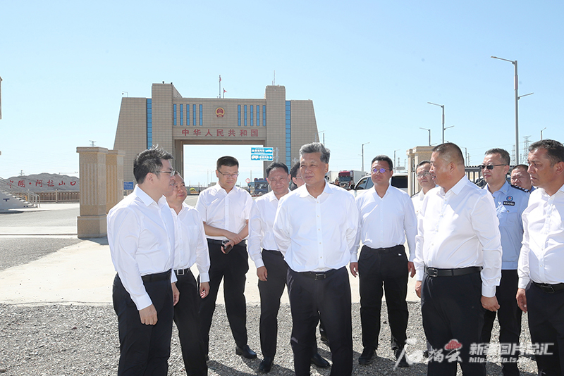7月20日,自治区党委书记马兴瑞在博尔塔拉蒙古自治州调研。这是马兴瑞来到阿拉山口国门,听取口岸运行和对外贸易进展介绍,实地察看口岸公路升级改造情况。天山网-新疆日报记者崔志坚 摄