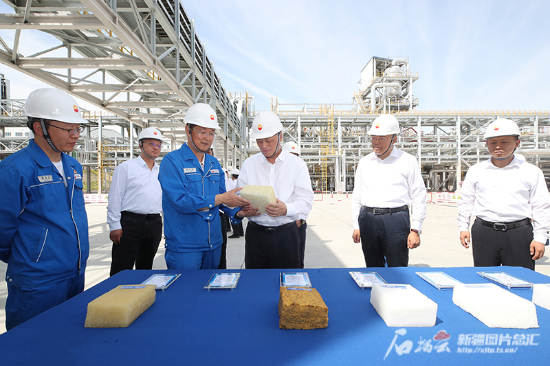 7月24日,自治区党委书记马兴瑞在中国石油独山子石化公司察看产品展示,深入了解企业改革经营发展情况。天山网-新疆日报记者 崔志坚摄