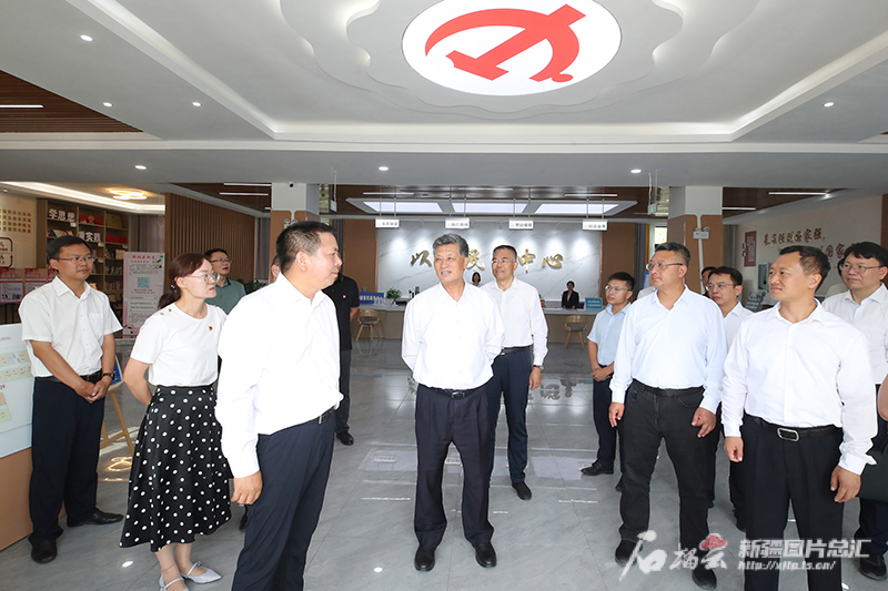 7月24日,自治区党委书记马兴瑞在独山子区新北区街道宣讲调研,同基层干部共同学习感悟全会精神,听取大家对基层改革发展的诉求建议。天山网-新疆日报记者 崔志坚摄