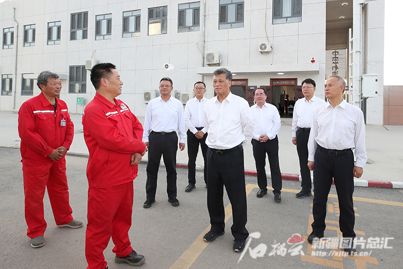 马兴瑞来到中曼石油温北联合站,听取温宿县油气分布、勘探、开采情况介绍,深入了解企业经营发展情况,希望企业积极参与新疆油气勘探开发和增储上产工作布局,加大投入力度,持续提升油气产量,为保障国家能源安全贡献更大力量,推动油气资源更好服务当地、惠及民生。
