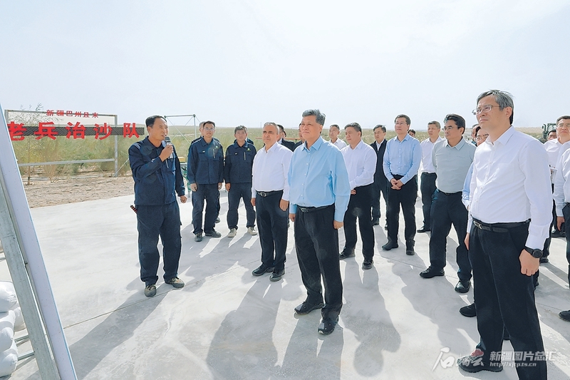 9月15日,自治区党委书记马兴瑞,自治区党委副书记、自治区主席艾尔肯·吐尼亚孜等来到巴音郭楞蒙古自治州且末县调研。这是马兴瑞、艾尔肯·吐尼亚孜等深入沙漠腹地,考察塔克拉玛干沙漠边缘阻击战规划实施工作,慰问且末县老兵治沙队,实地察看防沙治沙成效。天山网-新疆日报记者 崔志坚摄