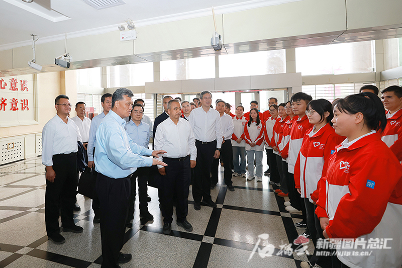 9月15日,自治区党委书记马兴瑞,自治区党委副书记、自治区主席艾尔肯·吐尼亚孜等看望且末县西部计划志愿者,与大家亲切交流。天山网-新疆日报记者 崔志坚摄