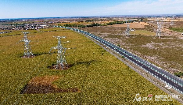 塔城—乌苏750千伏输变电工程跨越连霍高速(拍摄于9月28日)。马元 摄