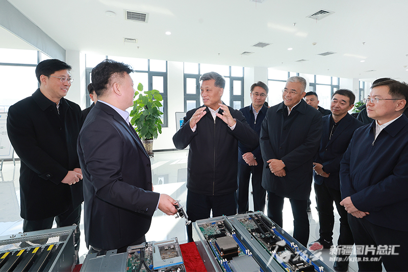 11月18日,自治区党委书记马兴瑞来到位于克拉玛依市云计算产业园区的碳和网络科技有限公司,详细了解企业参与云计算产业发展情况。天山网-新疆日报记者 崔志坚摄
