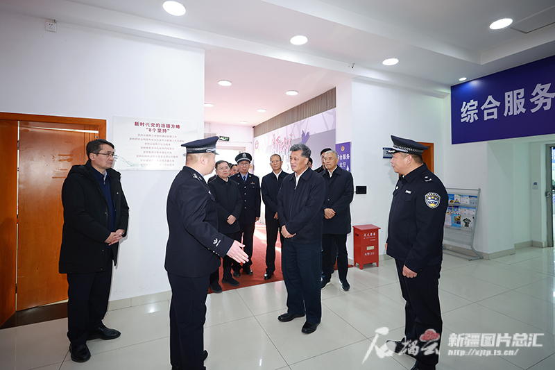 11月18日,自治区党委书记马兴瑞来到克拉玛依区公安分局胜利路派出所,调研维护稳定、服务群众等情况。天山网-新疆日报记者 崔志坚摄