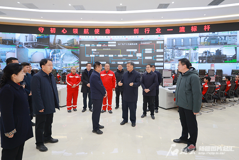 2月17日,自治区党委书记、兵团党委第一书记、第一政委马兴瑞来到位于铁门关经开区的新疆新冀能源化工有限公司,了解兵地资源共享,共同培育优势产业、推动高质量发展情况。天山网-新疆日报记者 崔志坚摄