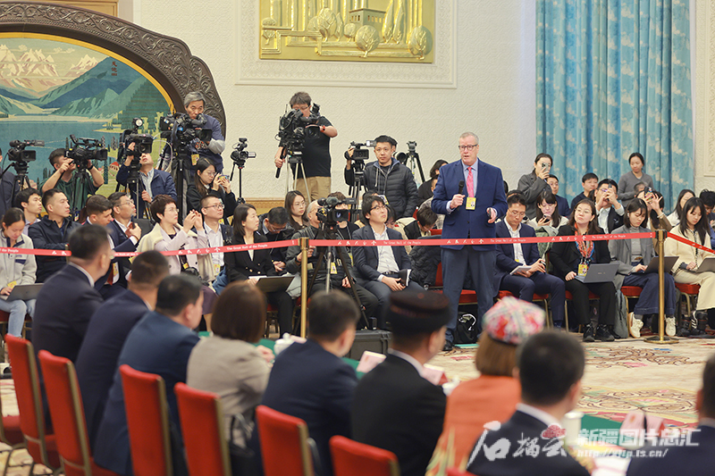 欧洲时报、中央广播电视总台、中阿卫视、埃及中国周报、中国日报、凤凰卫视、澎湃新闻、光明日报等媒体记者先后提问,就新疆高水平开放、科技发展、应对美国制裁、南疆巩固脱贫攻坚成果和乡村全面振兴、“十大产业集群”建设、文旅产业发展等了解相关情况。新疆代表团代表积极应答,全面介绍工作成果,热情邀请中外记者到新疆采访交流。在讲述新疆开放工作时,有关代表说,坚持开放战略不动摇,这是新疆的历史使命,更是由新疆独特优势所决定的,“风光无限好,正是在新疆”。在介绍新疆科技创新情况后,有关代表“喊话”海内外科技界有志之士:“孔雀东南飞固然有其风景,雄鹰西北行亦有别样风采。”在回应“如何看待中国企业因‘强迫劳动’被美国列入制裁名单”时,有关代表严肃指出,这与实不符、于理不合、于法无据,我们坚决反对!一些中国企业已经依法起诉了一些长期散布新疆存在所谓“强迫劳动”谎言谬论的组织和机构。我们鼓励和支持更多企业,拿起法律武器捍卫合法权益。