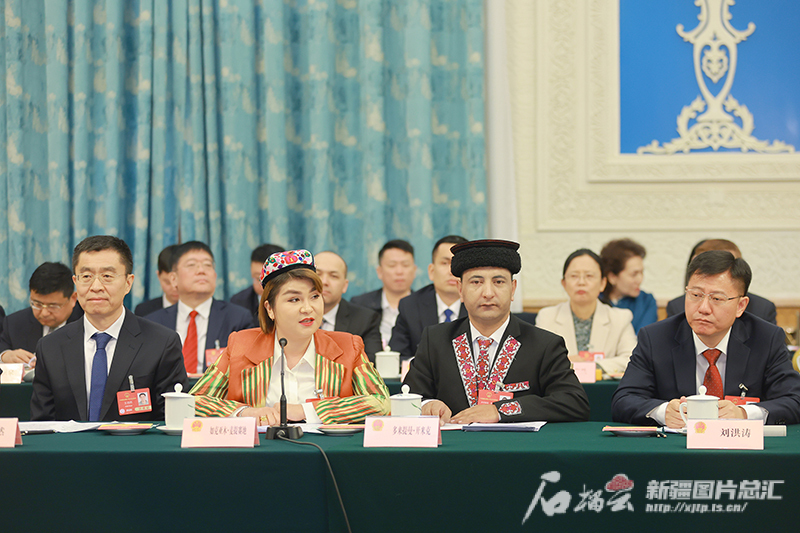 3月7日,参加十四届全国人大三次会议的新疆代表团在人民大会堂新疆厅举行全体会议,继续审查计划报告和预算报告,并向中外媒体开放。天山网-新疆日报记者 崔志坚摄